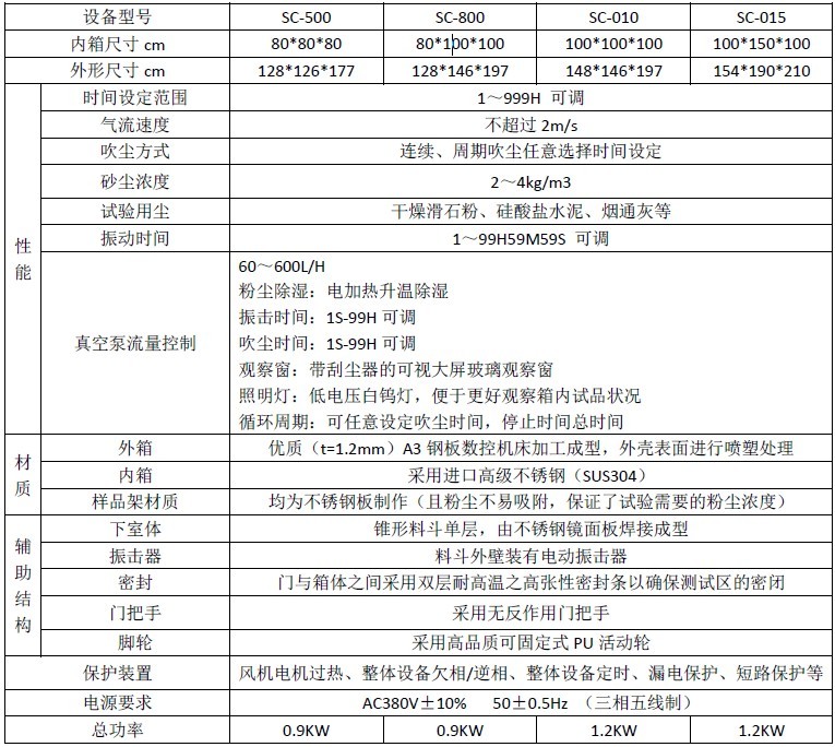 試驗箱底部有更換粉塵裝置