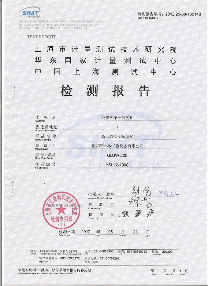 >>高低溫交變?cè)囼?yàn)箱檢測(cè)報(bào)告-上海計(jì)量院-公安部
