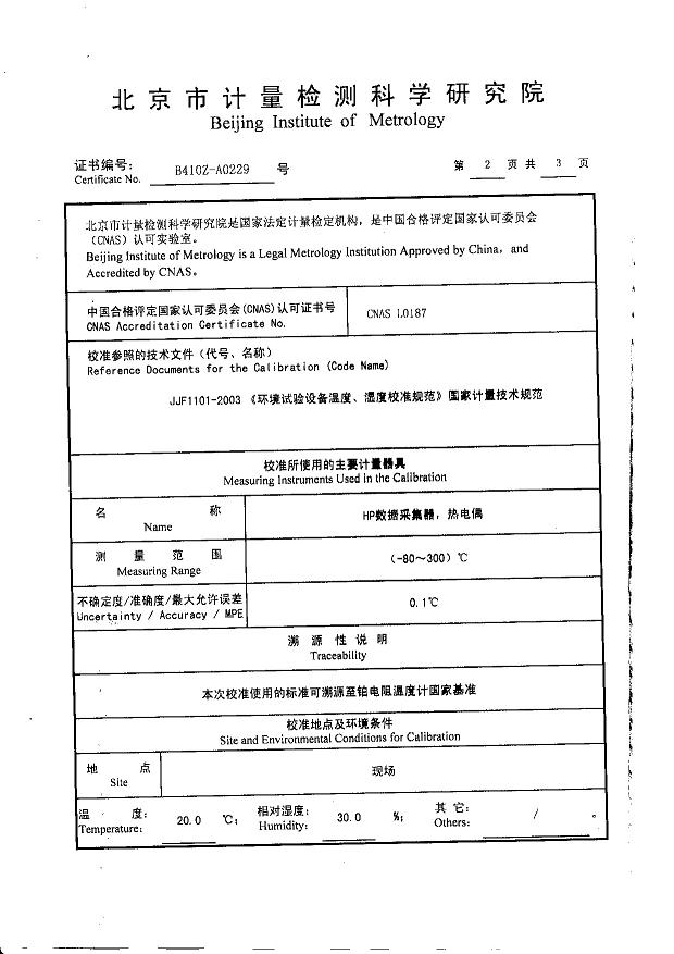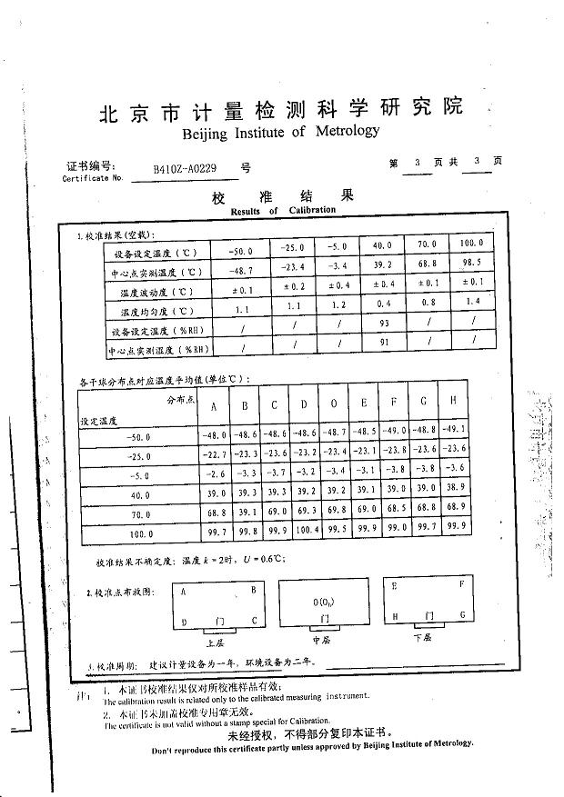 >>高低溫濕熱試驗箱校準(zhǔn)證書-北京計量院-中國電科院1