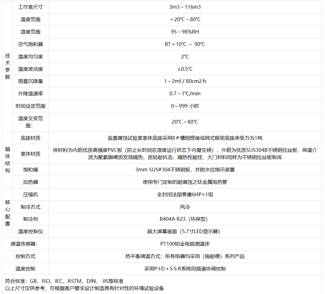產(chǎn)品簡介:鹽霧腐蝕試驗室突破了傳統(tǒng)鹽霧箱的概念,除具有通常鹽霧試驗機(jī)的功能外,還結(jié)合有交變(循環(huán))鹽霧試驗的功能,提供了癡狀腐蝕和絲狀腐蝕等試驗環(huán)境,具備了熱風(fēng)干燥、濕熱、強(qiáng)制干燥、鹽霧等試驗環(huán)境。